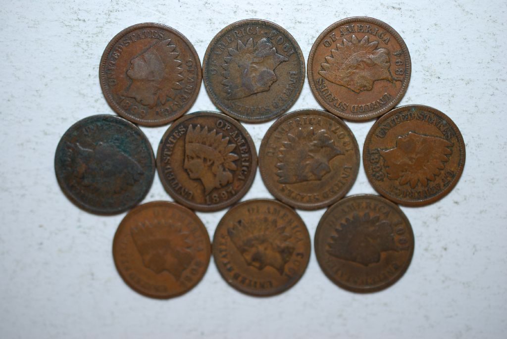 Indian Head One Cent; Various Dates; All Good Or Better Condition; Lot of 10; EST. $15-20