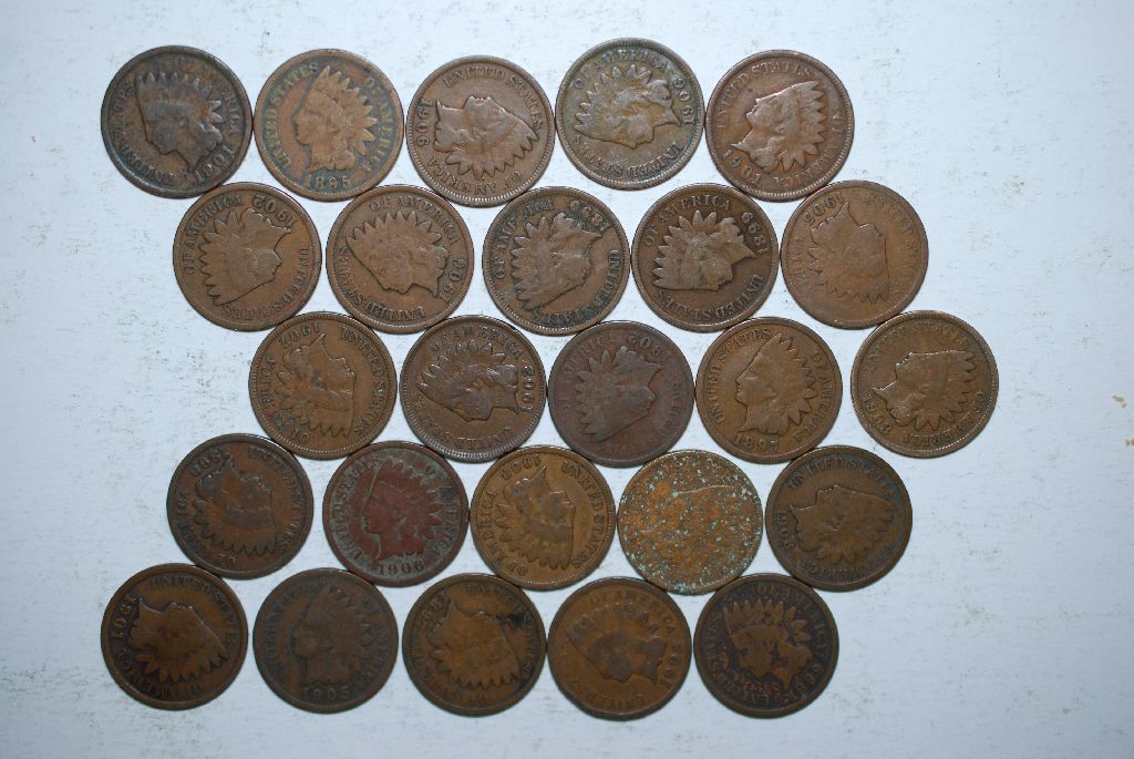 Indian Head One Cent; Various Dates; All Good Or Better; Lot of 25; EST. $25-30