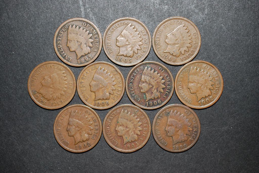 Indian Head One Cent; Various Dates & Conditions; Lot of 10; EST. $10-20