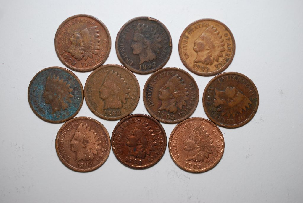 Indian Head One Cent; Various Dates & Conditions; Lot of 10; EST. $10-20