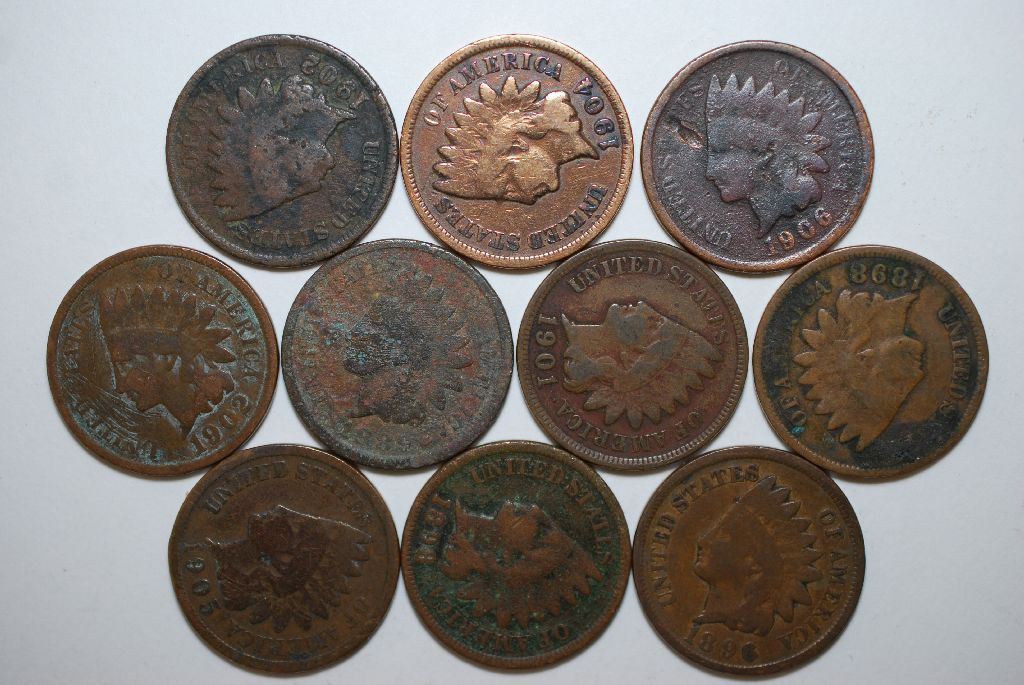 Indian Head One Cent; Various Dates & Conditions; Lot of 10; EST. $10-20