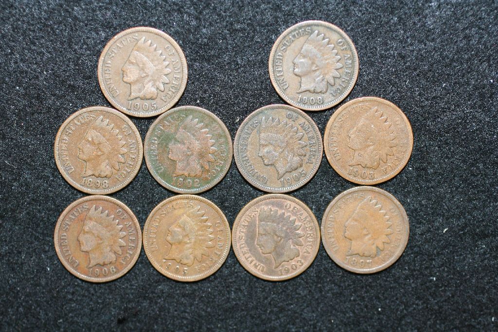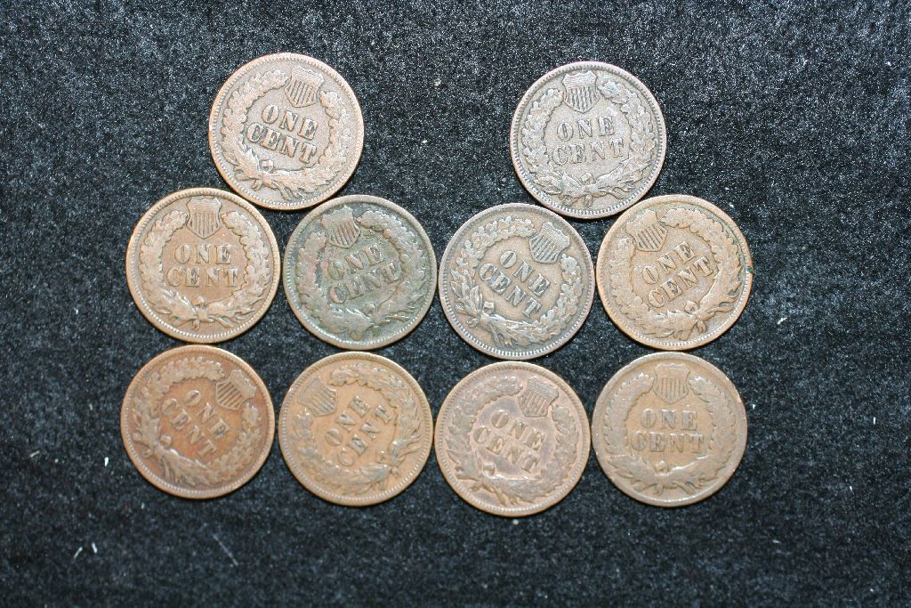 Indian Head One Cent; Various Dates & Conditions; Lot of 10