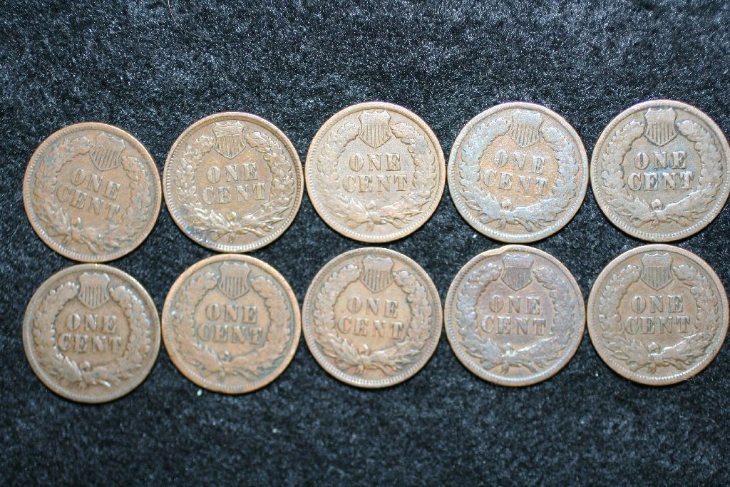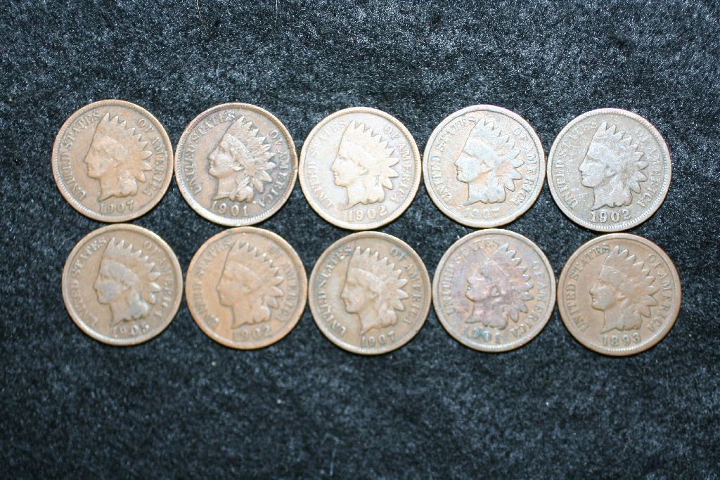 Indian Head One Cent; Various Dates & Conditions; Lot of 10