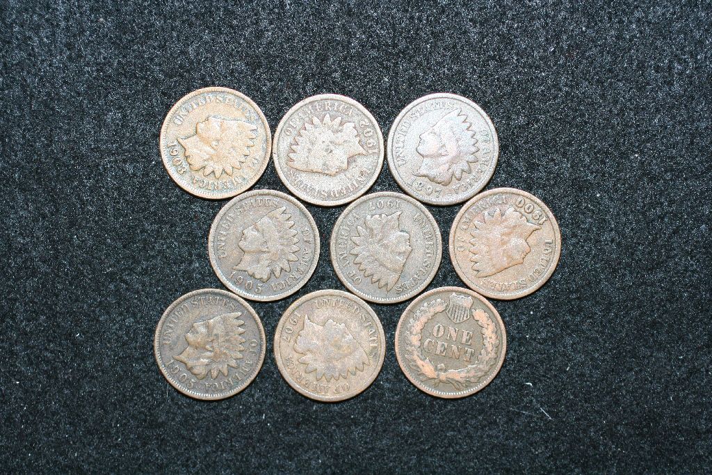 Indian Head One Cent; Various Dates & Conditions; Lot of 10