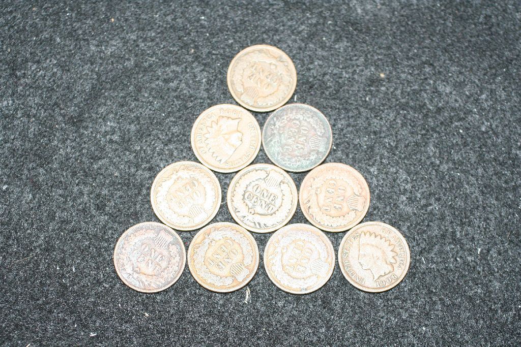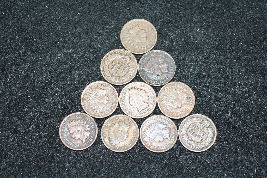 Indian Head One Cent; Various Dates & Conditions; Lot of 10
