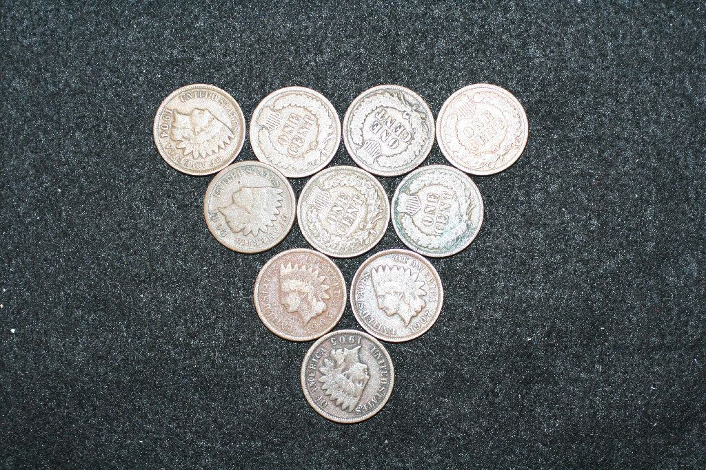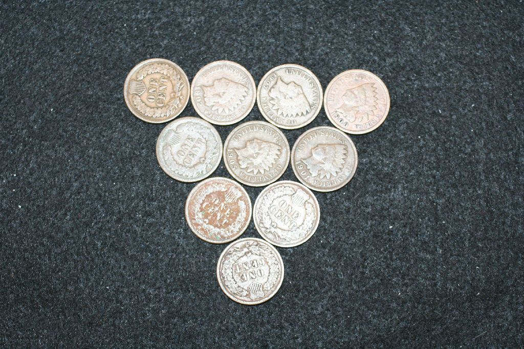 Indian Head One Cent; Various Dates & Conditions; Lot of 10