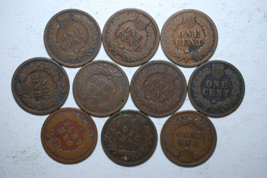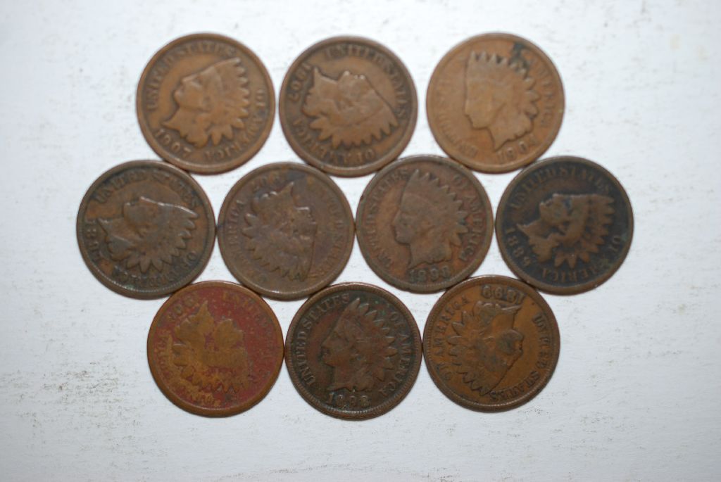 Indian Head Pennies; Various Dates; All Good Or Better; Lot of 10; EST. $15-20