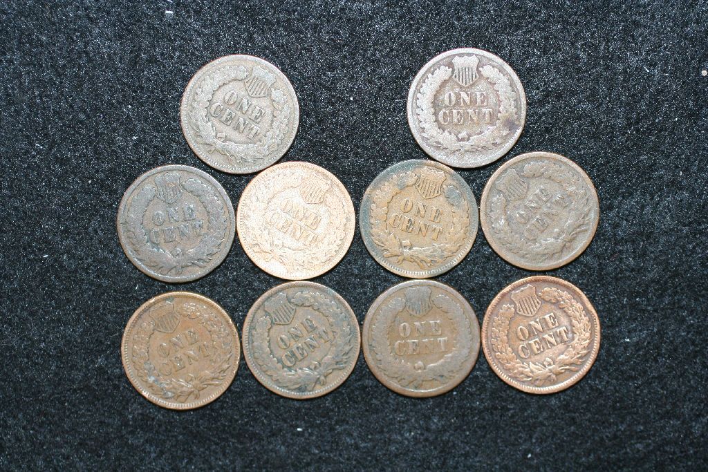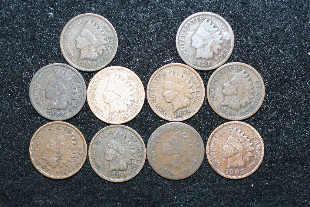 Indian Head Penny, Various Dates & Conditions, Lot of 10