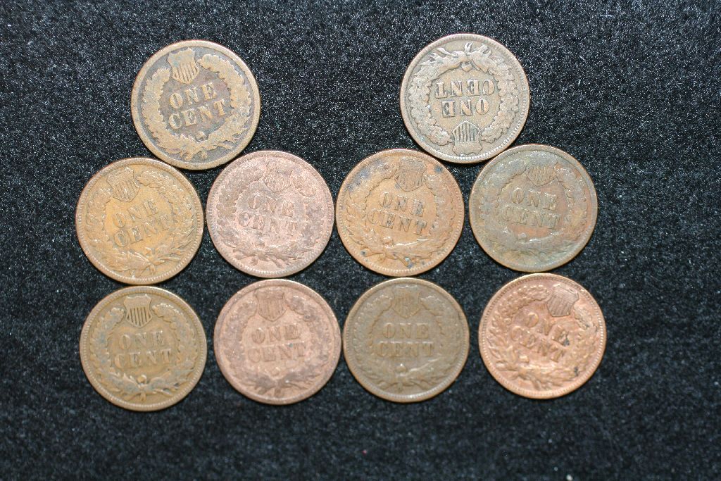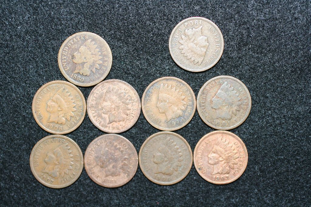Indian Head Penny, Various Dates & Conditions, Lot of 10