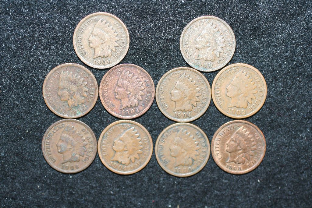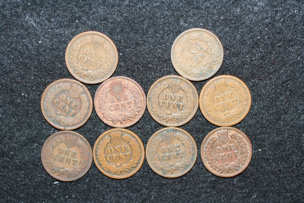 Indian Head Penny; Various Dates & Conditions, Lot of 10