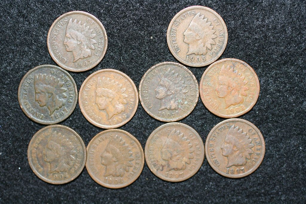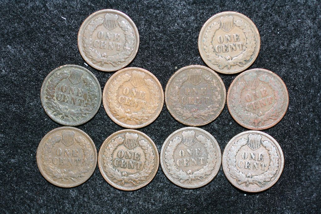 Indian Head Penny, various dates & conditions, lot of 10