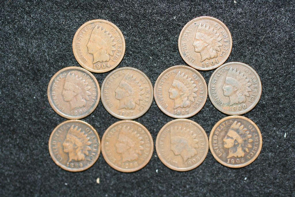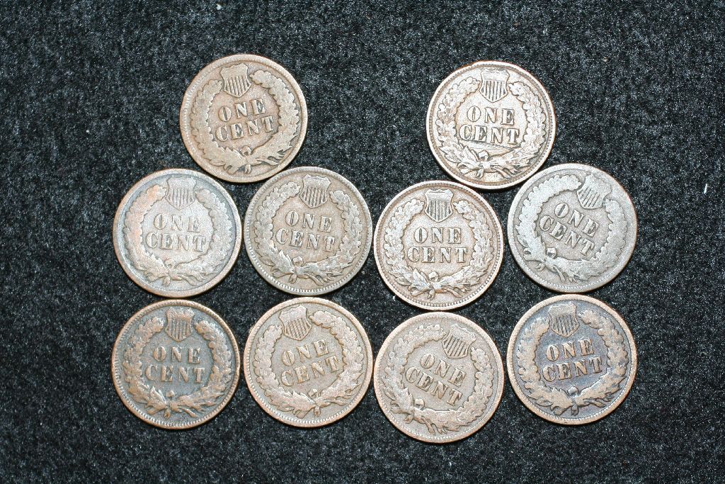Indian Head Penny, various dates & conditions, lot of 10