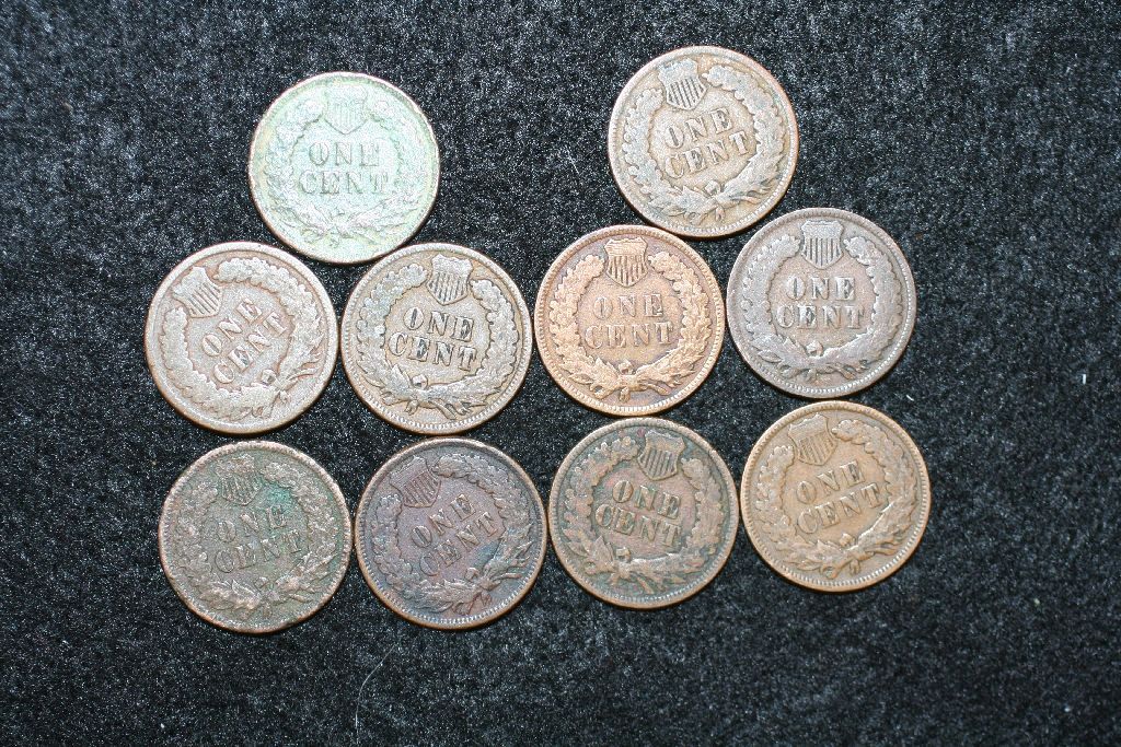 Indian Head Penny, various dates & conditions, lot of 10