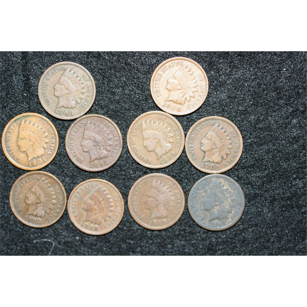 Indian Head penny, various dates & conditions, lot of 10