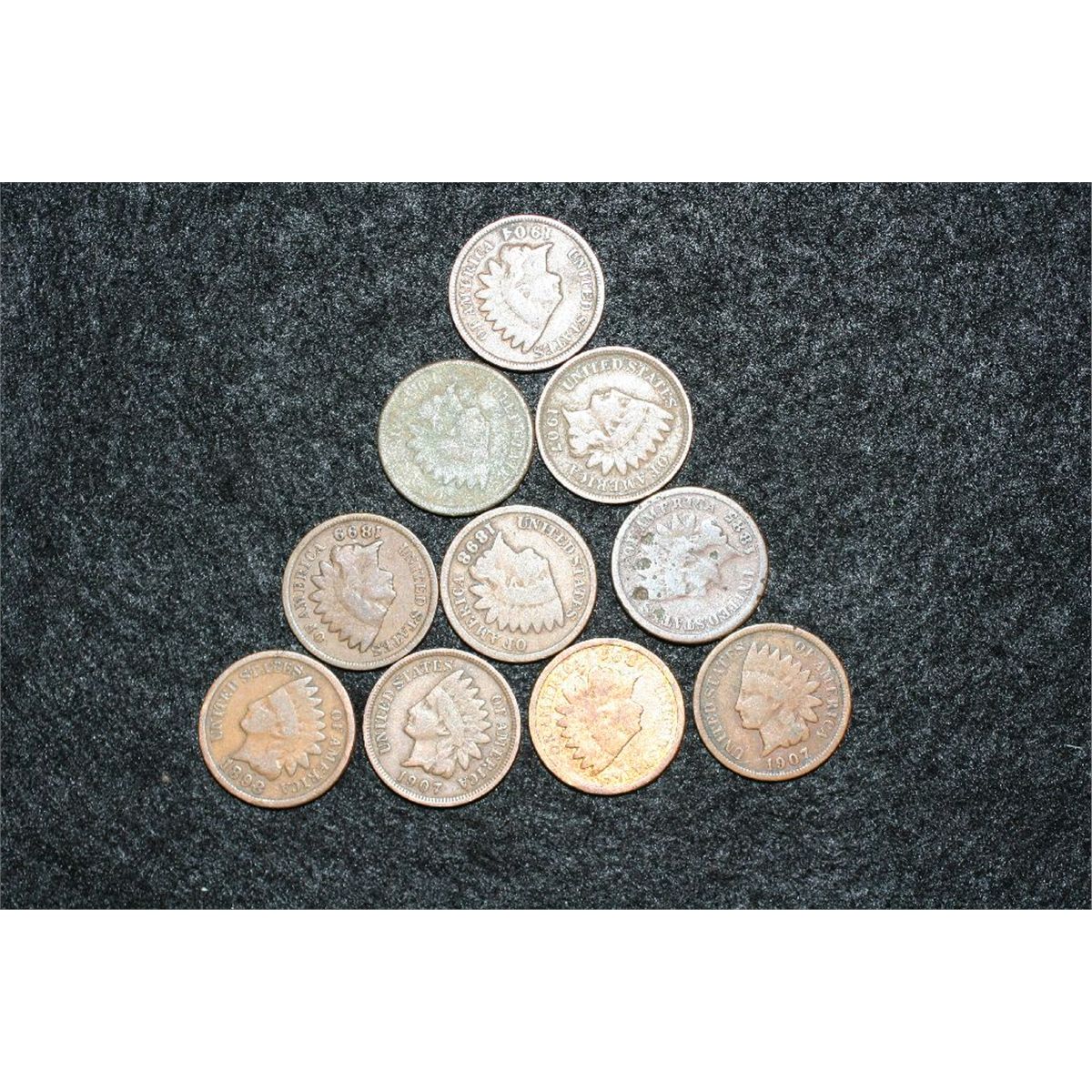 Indian Head penny, various dates & conditions, lot of 10