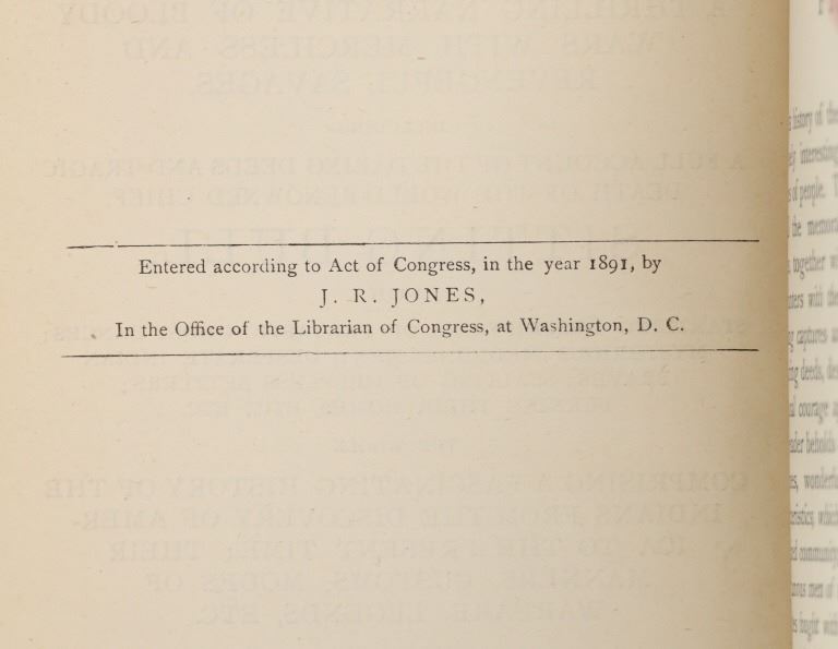Featured in this lot is "Indian Horrors or Massacres by the Red Men", by Henry David Northrop, 1891. The book provides riveting narratives of various conflicts up through the Indian wars of the 1880's. There are numerous illustrations throughout, as well as images of Native Americans, such as Sitting Bull, Plenty Scalps, Standing Bear, and many more. The full title of the book is, "Indian Horrors or Massacres by the Red Men: Being a Thrilling Narrative of Bloody Wars with Merciless and Revengeful Savages, including a full account of the daring deeds and tragic death of the world-renowned chief, Sitting Bull with startling descriptions of fantastic ghost dances, mysterious medicine men; desperate Indian braves; scalping of helpless settlers; burning their homes, etc. etc. The whole comprising a fascinating history of the Indians from the Discovery of America to the present time; their manners, customs, modes of warfare, legends, etc." This green cloth bound stamped beautifully illustrated and gold gilt decorated hardcover is in nice condition. Fading, scuffing on covers. Intact pages have marble painted top, bottom, and fore edges, age tanning noted throughout. Measures 5.25"W x 7.75"L x 1"D, weight 1lb, 2oz.