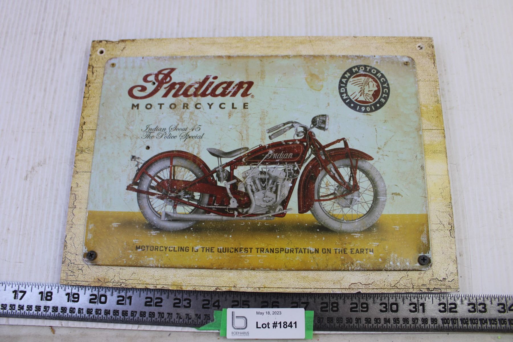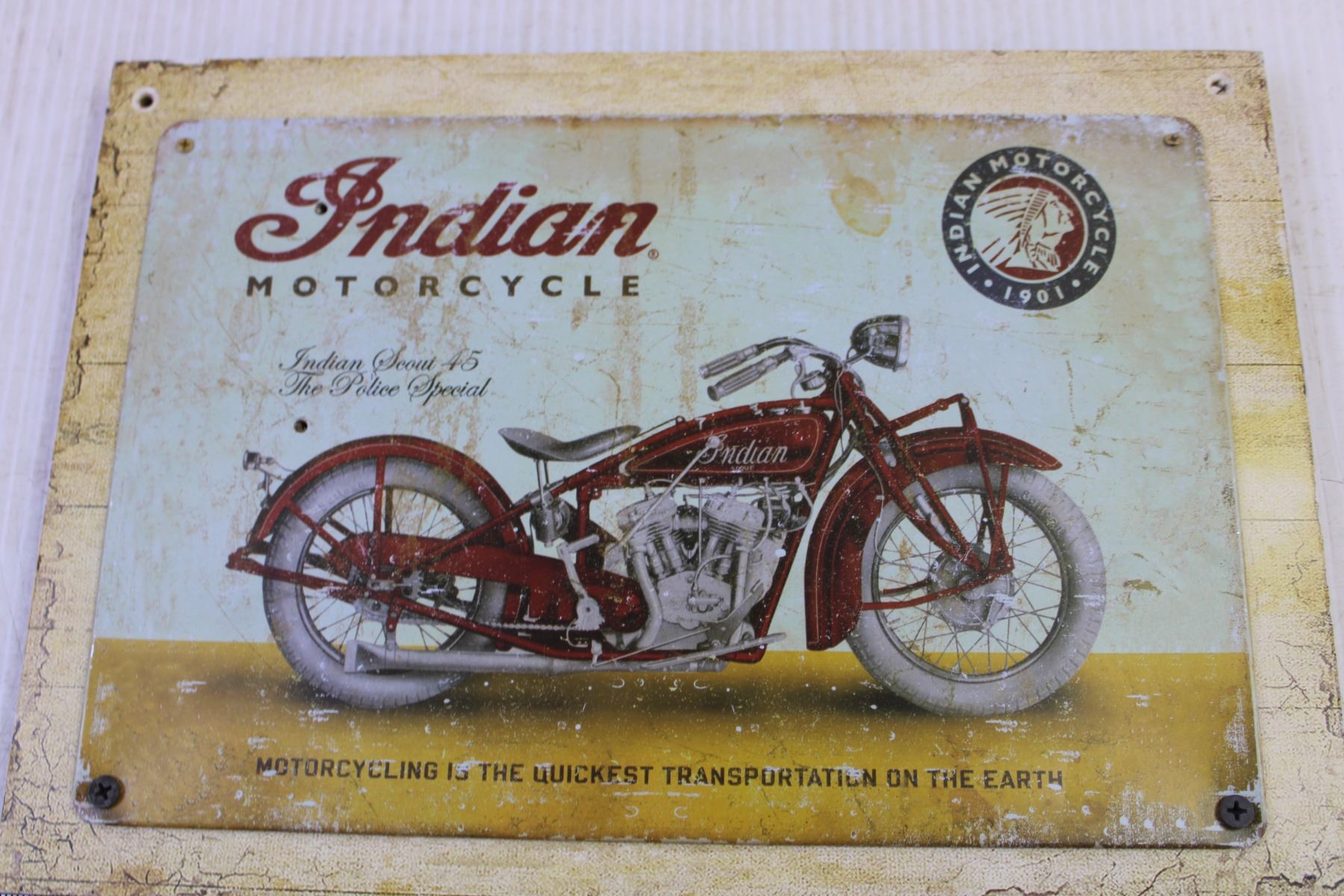 Indian Motorcycle Metal Sign on Wooden Plaque