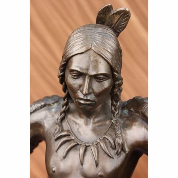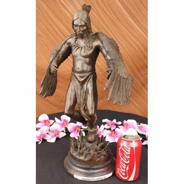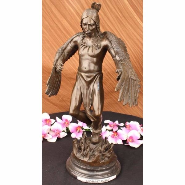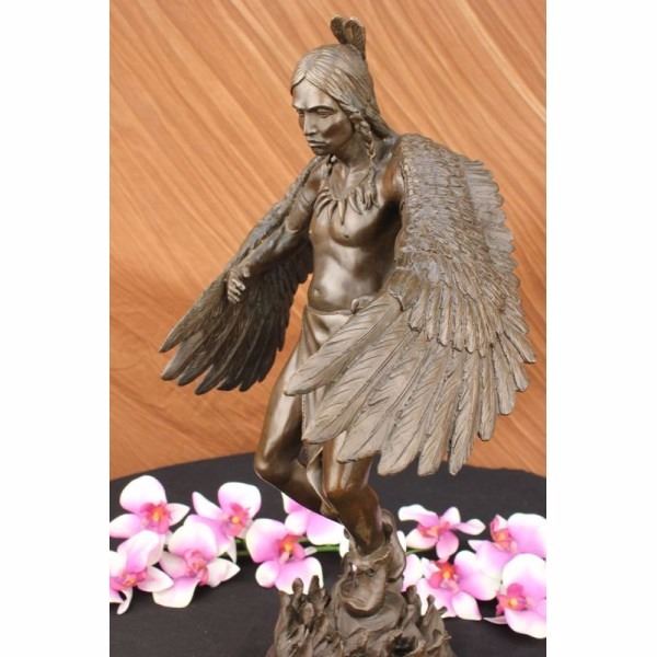 The Native American Shaman, Or Medicine Man, Stands Looking Downward, With His Arms Bent That Are Attached To Eagle Wings. The Eagle Is A Sacred Messenger, Carrying Our Prayers On Its Wings To The Creator, And Returning With Gifts And Visions For The People. Eagle Feathers Assist Shamans In Connecting With The Spirit For Healing. They Are Deemed The Most Sacred Healing Tools, A Symbol Of Power, Healing And Wisdom. The Bronze Sculpture Was Molded Using The Ancient Method Of Lost-Wax Casting And Finished With A Brown Patina Tarnish. The Sculpture Is Mounted Upon A Black Variegated Marble Base. Bronze Dimensions With Marble Base: Height 18 X Width 10 inches. Weight: 20 Lbs.