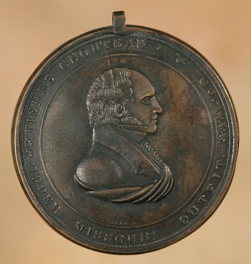 Indian Peace Medal. 3 ½" diameter featuring a bust of President Martin Van Buren, facing right. Below the bust, the name of the die-cutter B. MEAD D.S. Written around the face of this side PIERRE CHOTEAU JR. & CO. UPPER MISSOURI OUTFIT. The upper and lower inscription is separated by leaves. The reverse side features a crossed tomahawk & peace pipe with clasped hands below and the words PEACE AND FRIENDSHIP 1843. (est. $1,500-2,500). CONDITION REPORTS: www.auctioninsantafe.com/docs/cr2012.pdf