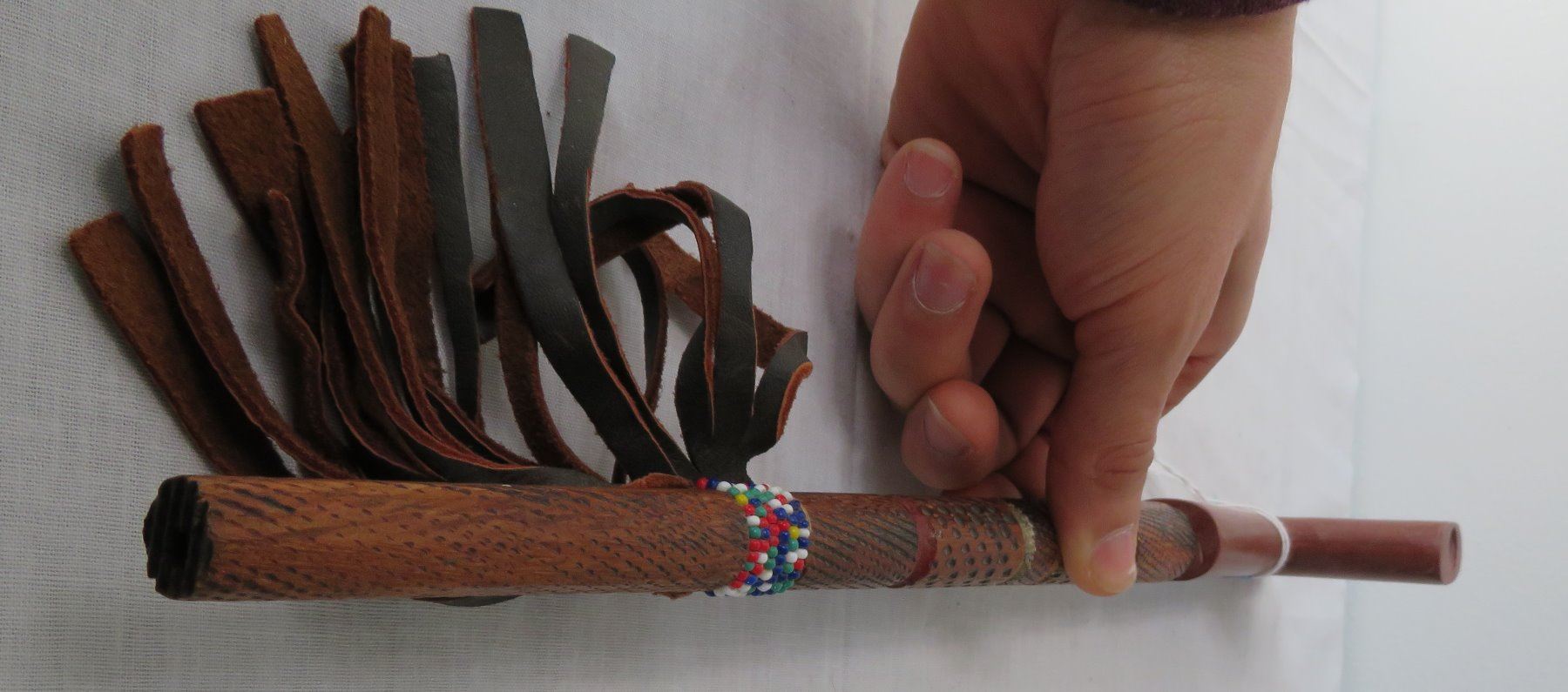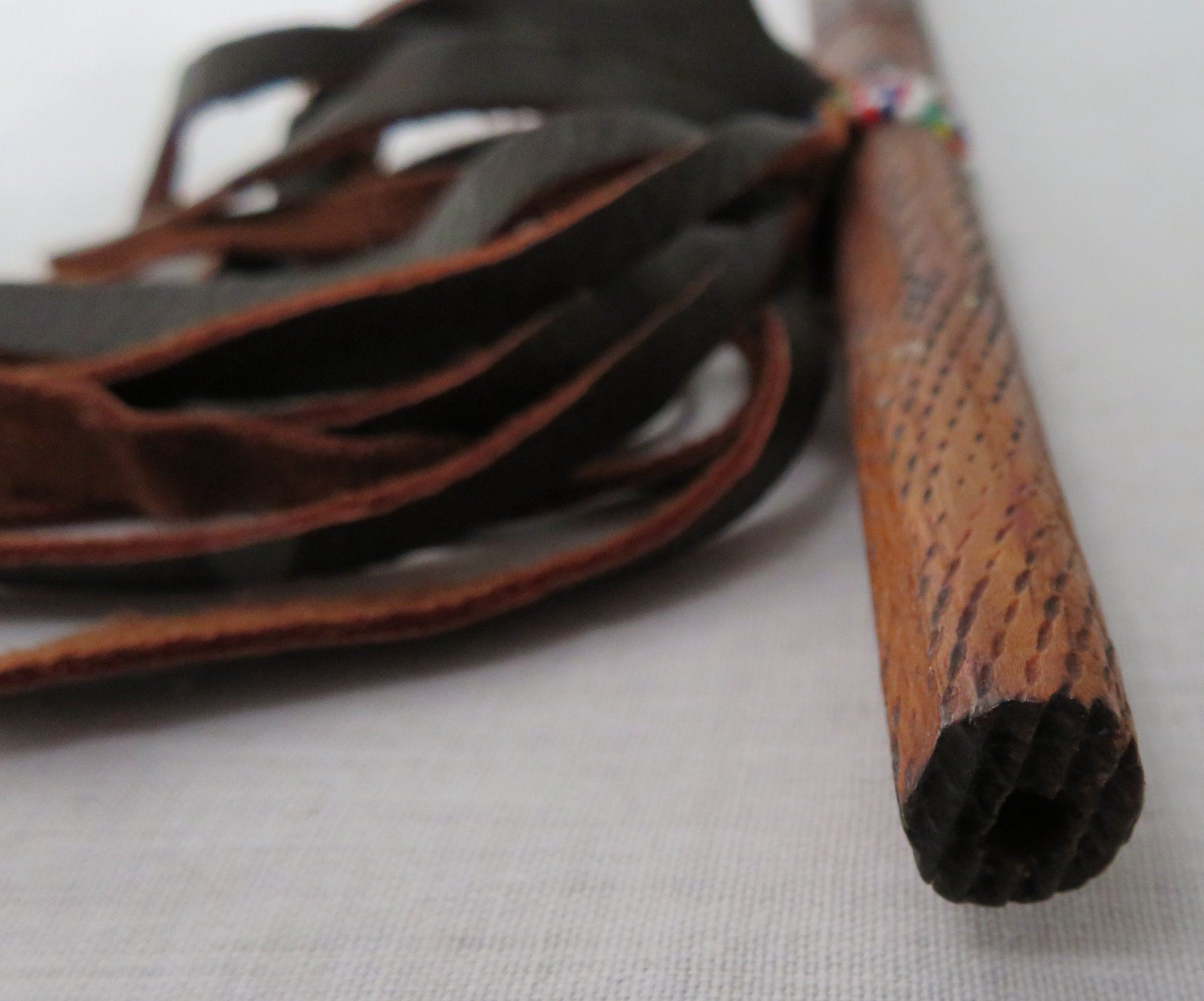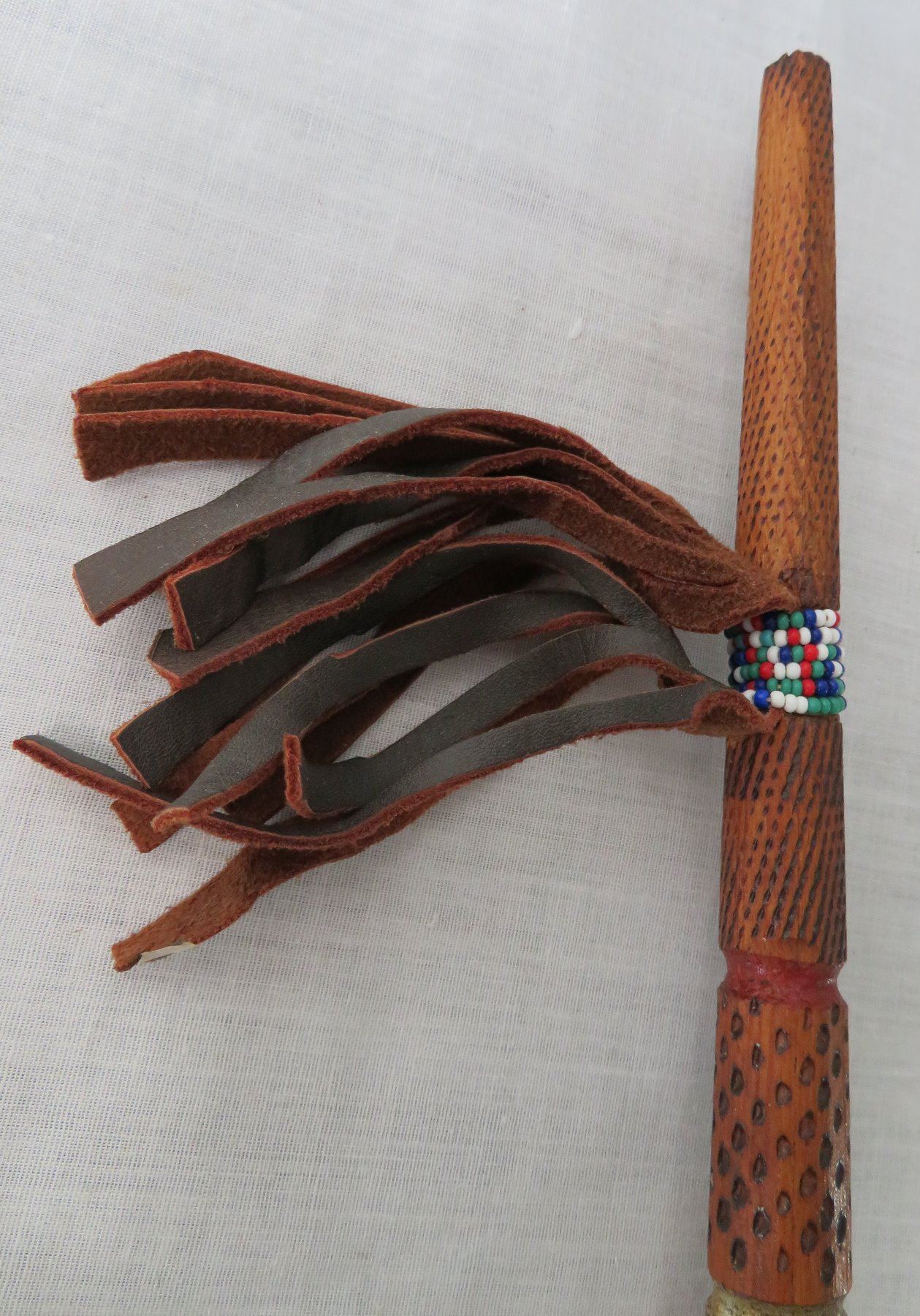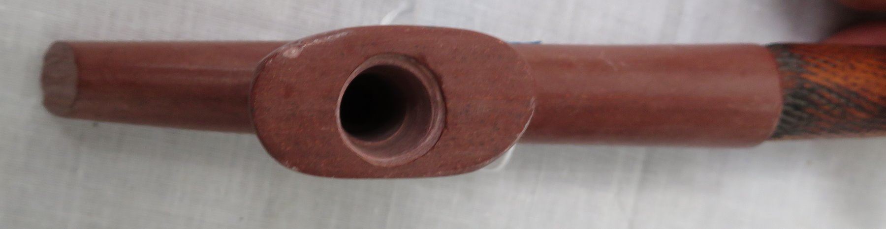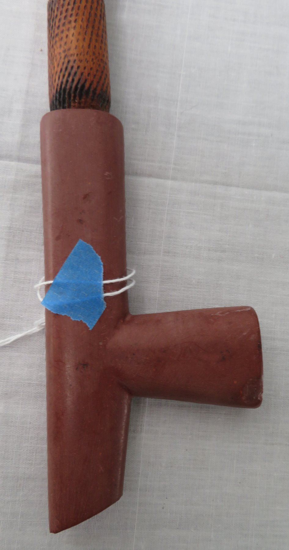 Indian Peace Pipe, c. 1950s. Made of wood, catlinite and beads, the item measures 2 3/4" x 16". Sioux, Minnesota. Minnesota pipe stone pipe is likely never to have been smoked. Condition: Good, see images. Shipping: $20.00 w/insurance and signature.