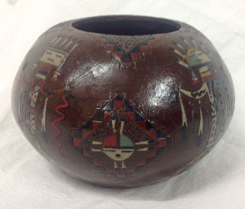 Indian Pot With Engraved Kachina Signed N A C