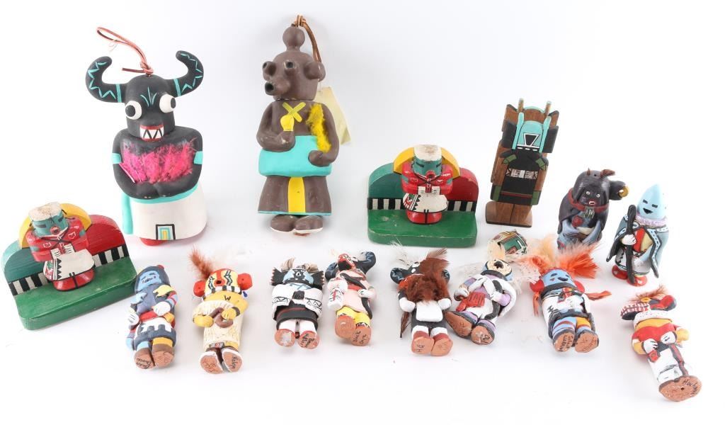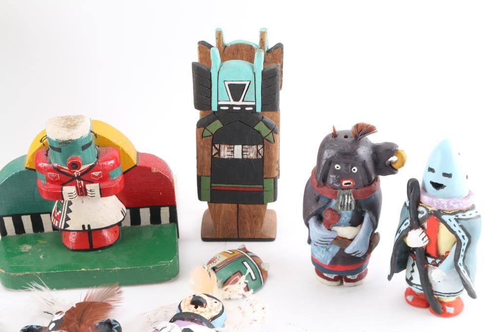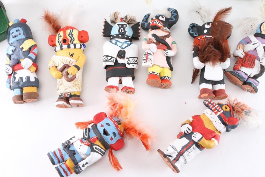 2 wind chimes, 1 napkin holder, 10 clay Kachinas, 1 pair of bookends.