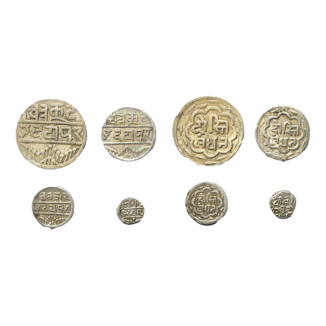 Indian Princely State, Mewar, Udaipur Mint, Set of 4, Silver Rupee, ½ Rupee, ¼ Rupee, 1/8 Rupee