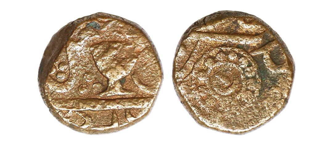 Ratlam State, Anonymous Issue, Copper Paisa, 10.00 gms, Obv. goblet, Rev. 'Raej' in dotted circle on rev, Unlisted in KM, very fine, very scarce.