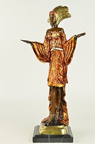 Reproduction from original piece Is Most Certainly Not Another Brick In The Wall, But Here To Define Herself As A Timeless Individual. She Stands Tall With Impeccable Posture, Draped In A Delicate, Defined Dress, With A Detailed, Matching Head Piece. The Tail Of Her Dress Gently Swarms The Surrounding Area By Her Feet, Which Are Covered By Sophisticated Heels To Put The Finishing Touches On Her Effeminate Appearance. Her Strong, Yet Delicate Hands Have The Power To Halt Any Man Who Dare Think He Is Worthy Of Entering Her Presence, Along With The Calm, Blank Stare In Her Face Which Defines Her Serious Demeanor. The Statue Is Made Completely Of Lost Wax, With A Crisp Patina Texture, Placed Upon Sleek Marble Base. Bronze dimensions with marble base each: Height 20 X Width 9 inches. Weight: 12 lbs.Please Note: This is a reproduction bronze sculpture from the original molded and signed. This featured bronze sculpture is a recast after the original, and has been done recently. This 100% bronze sculpture is an abstract piece certain to be a conversation piece.Please Note: This is a reproduction bronze sculpture from the original molded and signed. This featured bronze sculpture is a recast after the original, and has been done recently. This 100% bronze sculpture is an abstract piece certain to be a conversation piece.
