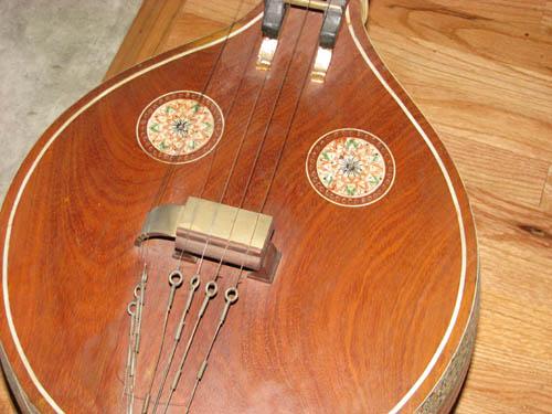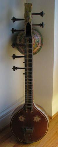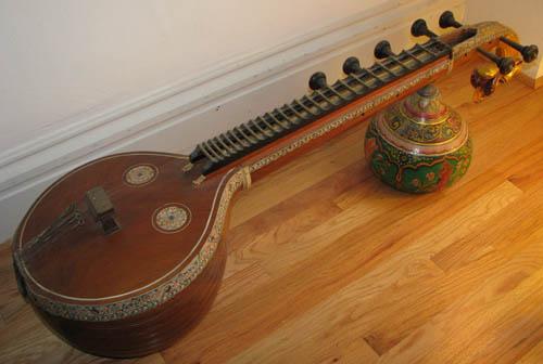 Indian Stringed Veena with Gold Leaf and Ivory Inlay