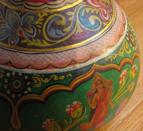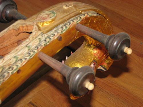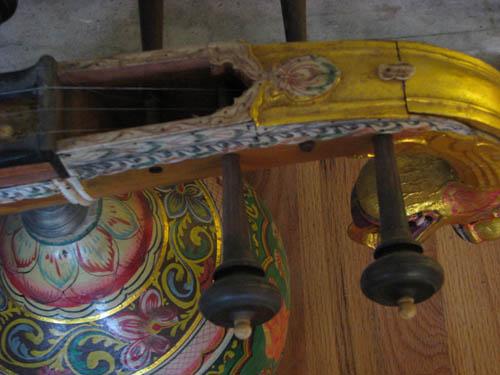 Title: Indian Stringed Veena with Gold Leaf, Painted Decoration and Ivory Inlay