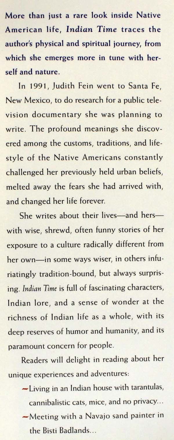 Indian Time by Judith Fein, A year of discovery with the Native Americans of the Southwest, hardback book c. 1993 Simon & Schuster, New York, comes in original book jacket, like new condition