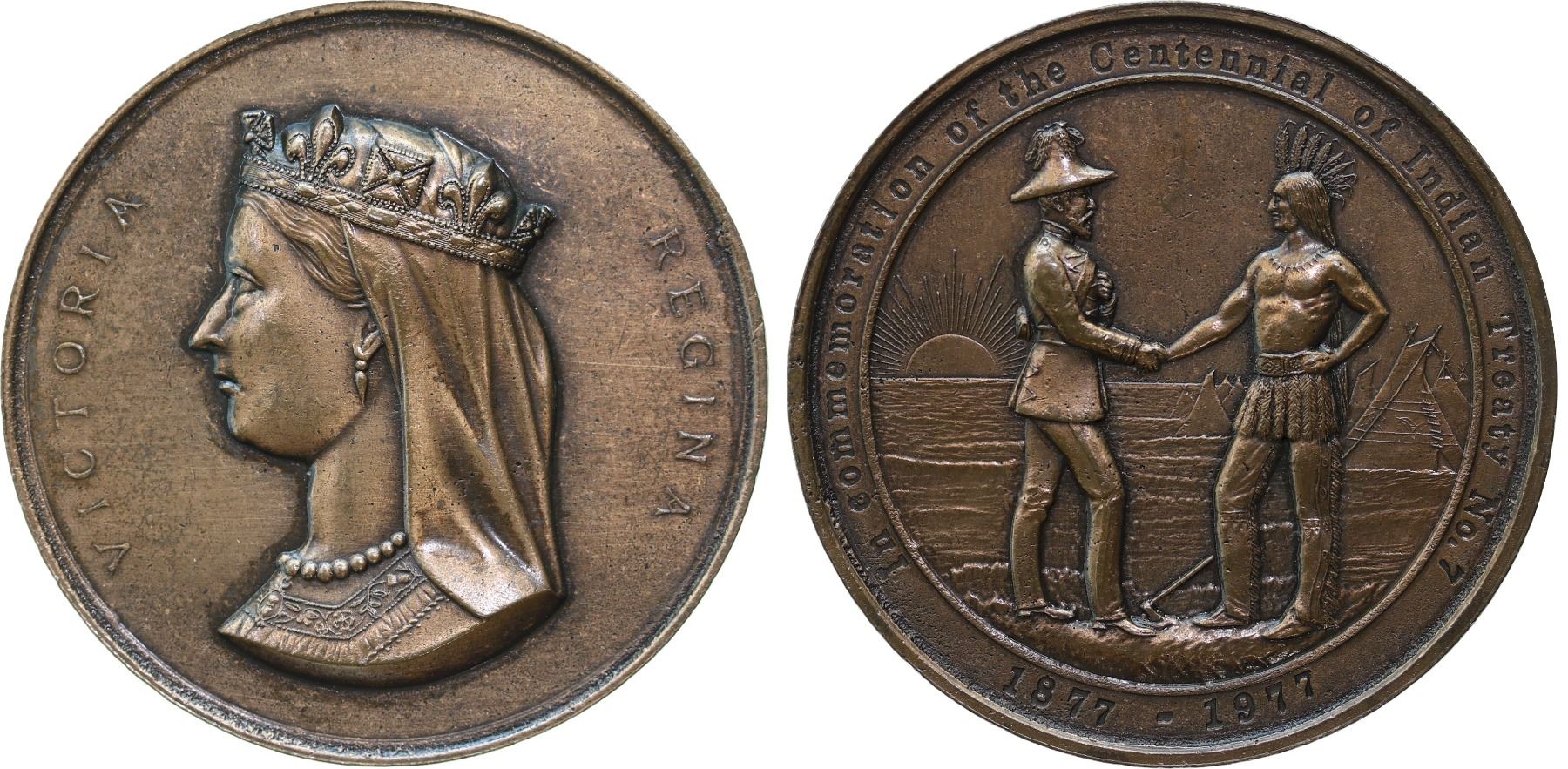 Indian Treaty No.7 Commemorative Bronze Copy - In Commemoration of the Centennial of Indian Treaty No.7 Medal 1877-1977. Struck from copy dies.