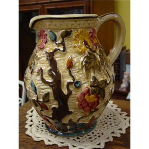 This beautiful pitcher is the Indian Tree pattern is by Woods of England. Hand painted and appears to be majolica. Please send zip code for shipping quote. Thanks!