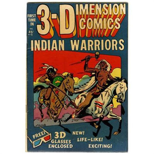 <B>Indian Warriors 3-Dimension Comics #1 (Star Publications, 1953) Condition: VF+.</B></I> L. B. Cole Cover. Glasses are still attached. Overstreet 2007 VF 8.0 value = $213; VF/NM 9.0 value = $327.<BR><BR><b>Shipping:</b> Comics - Unslabbed (<a target="_blank" href="http://www.heritageauctions.com/common/shipping.php">view shipping information</a>)