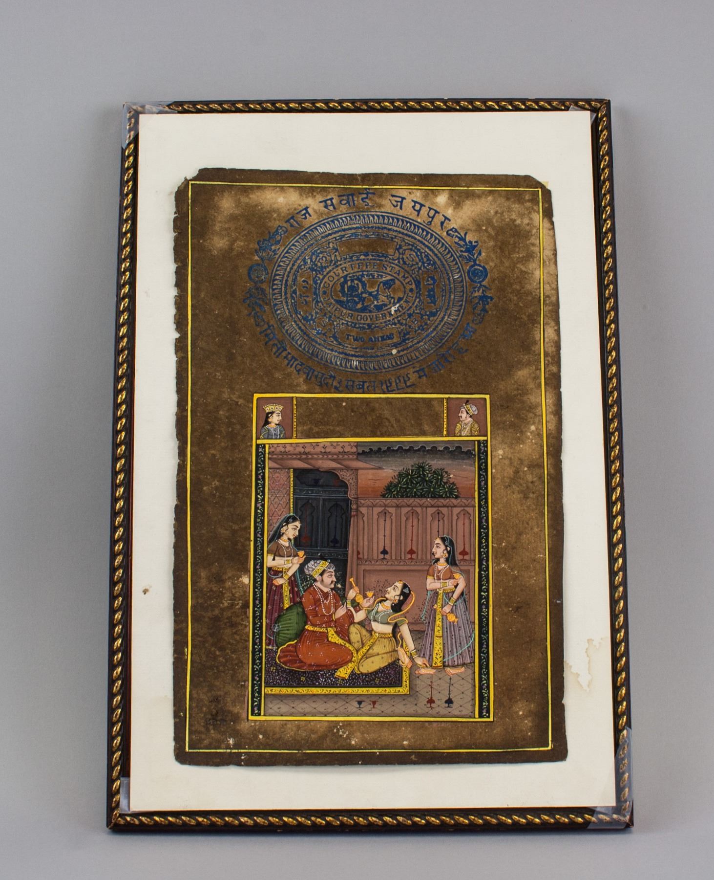 Painting of feast scene; Indian ink and watercolour on paper; framed; with court fee stamp; 22 cm x 34 cm