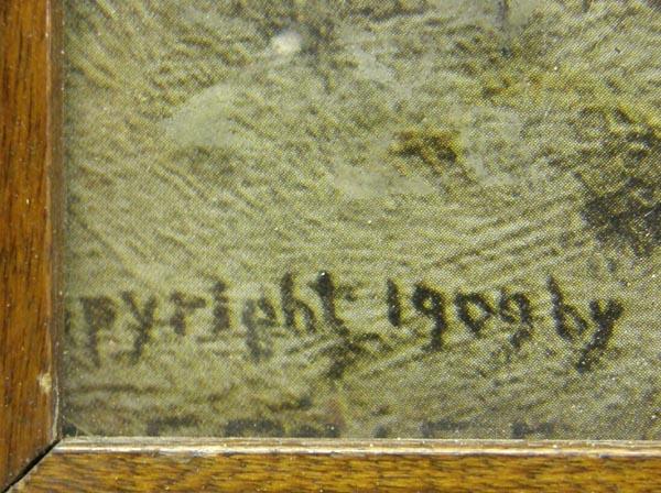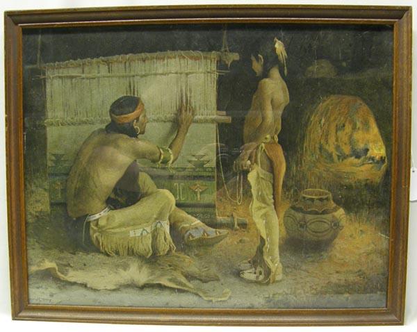 Indian Weaver Print By Crouse, copyright 1909. Framed in a wood frame, under glass, some creasing on print. Visual measures approx. 14 3/4'' x 19 1/4''. Buyers Pay Actual Shipping and Handling Charges(see terms and conditions for more information).