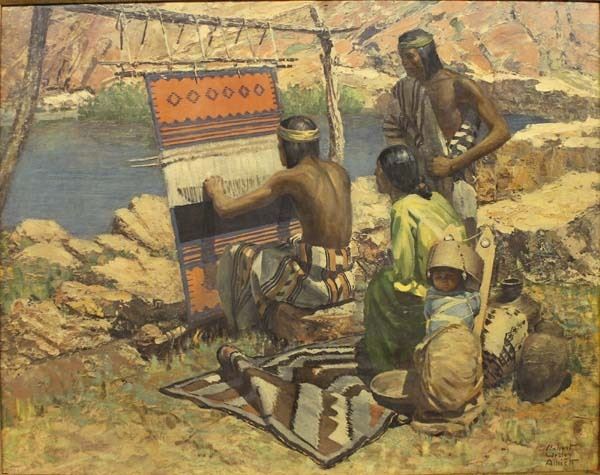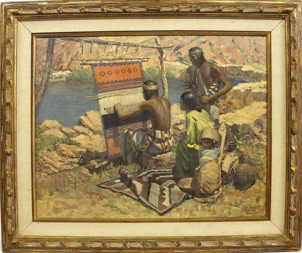 Framed Indian Weaver Print by Robert Wesley Amick from the Library of the Americas, measurers approx. 36'' W X 30''H