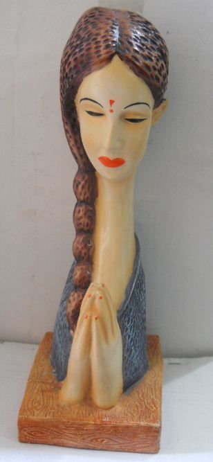 Indian Welcome Lady Polystone Statue Height: 16inch, Width: 6 inch