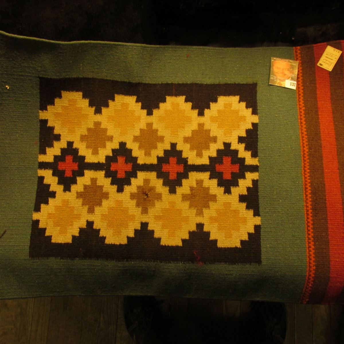 Indian Woven Table Top style Blanket, which 'Doc' valued at $195.00. Measures 26" x 16 1/4".