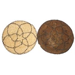 Indian baskets (2); White Mtn. Apache Indian basket, early star design, 1" rim damage, otherwise VG, 19th Century, 13.5"Dia. & Papago-Apache basket w/star design, Exc. condition, later 20th Century, 13.5"Dia.