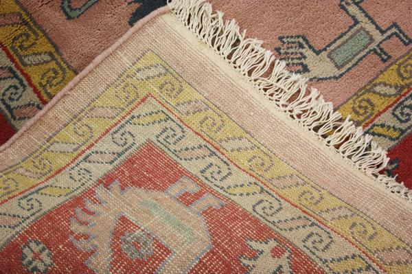 Indo Oushak figural carpet, with a pink field and pictorial design, 8' x 10'