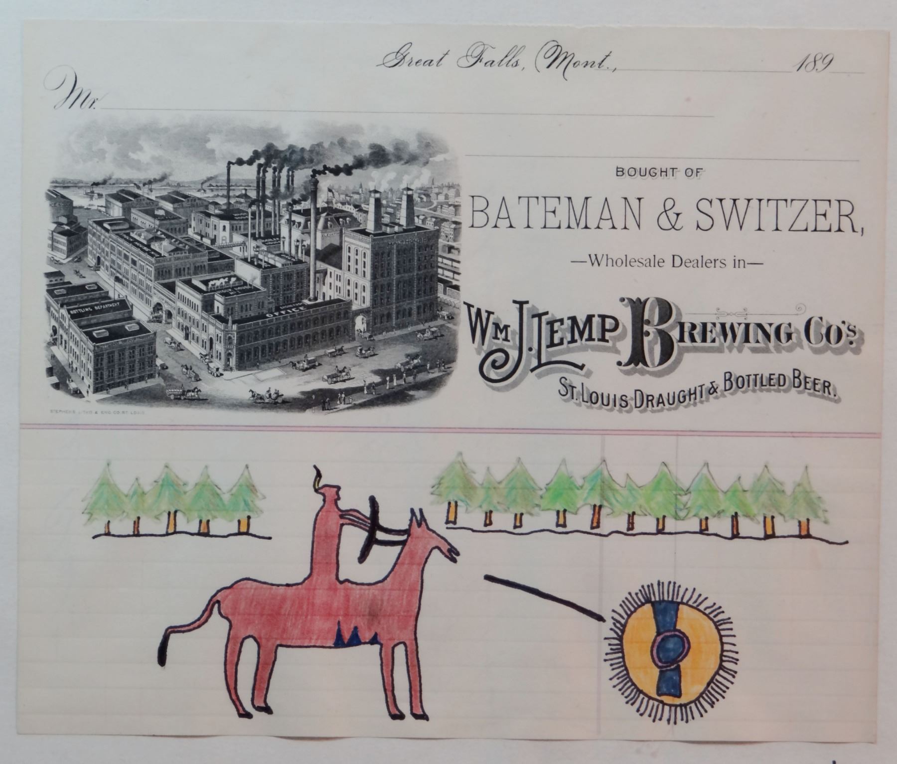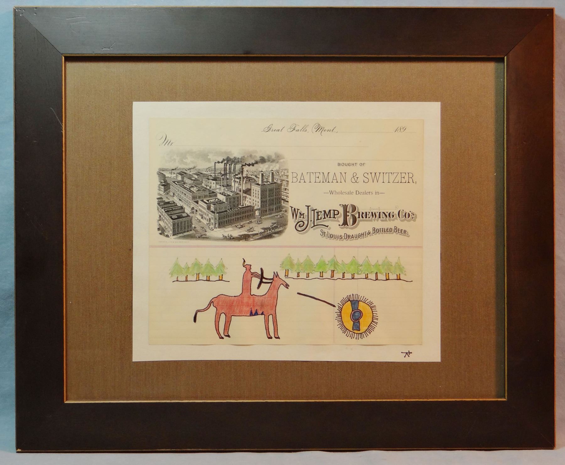Indian ledger art, on Bateman & Switzer ledger, 8" x 9 1/2"