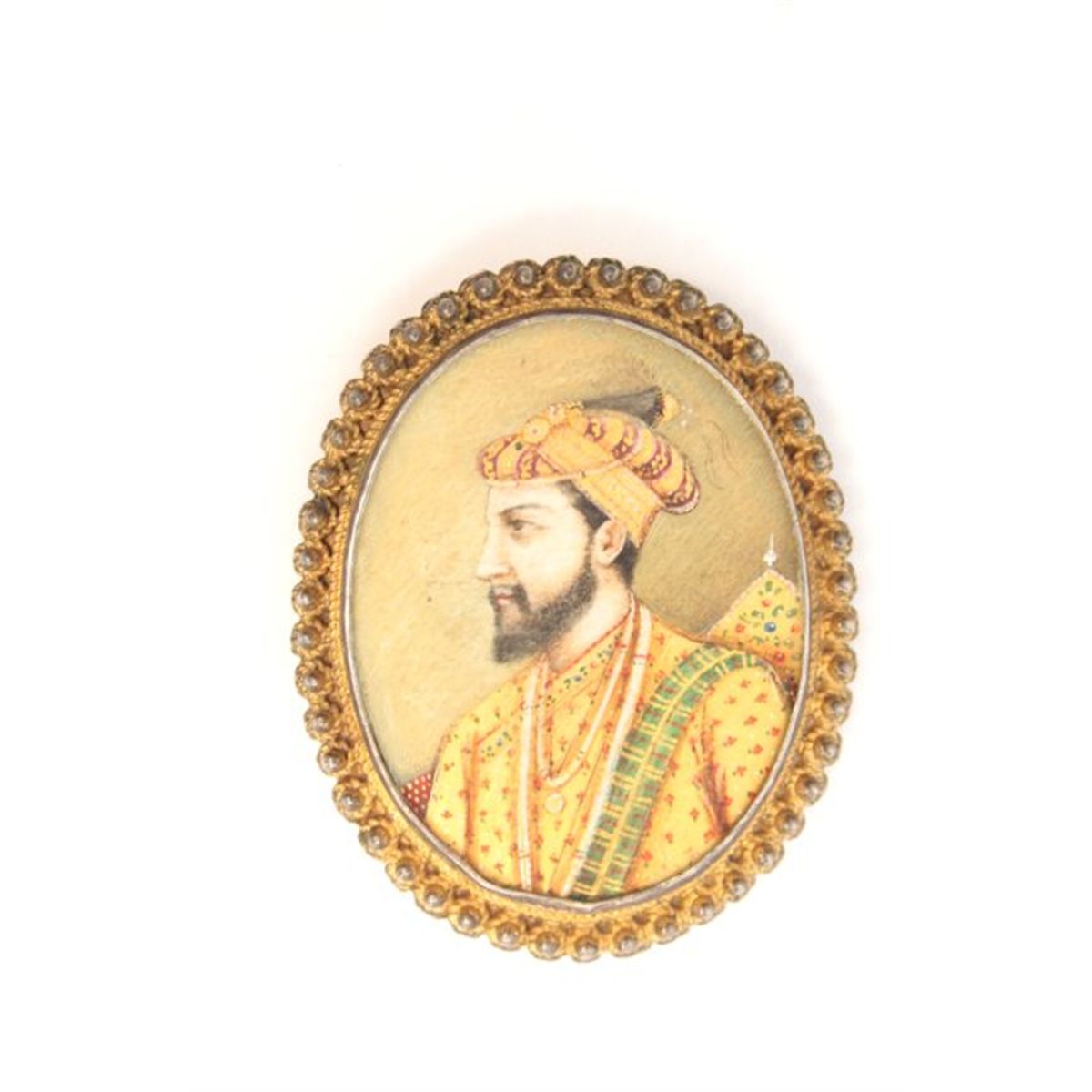 Indian miniature on ivory set in gilt silver
