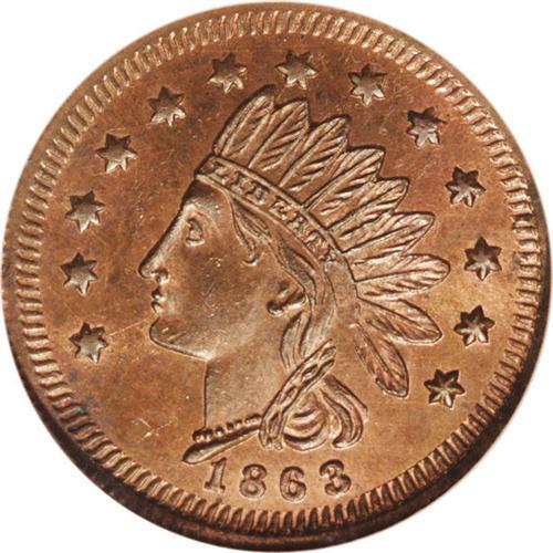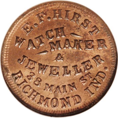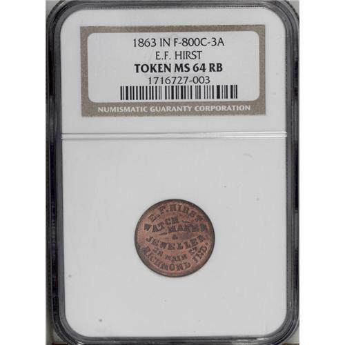 <B>1863 E.F. Hirst, Fuld-IN-800C-3a, Richmond, IN, MS64 NGC.</B></I> Lustrous, with 75% of the original luster remaining.<BR><I>From The Troy Wiseman Collection.</B></I>