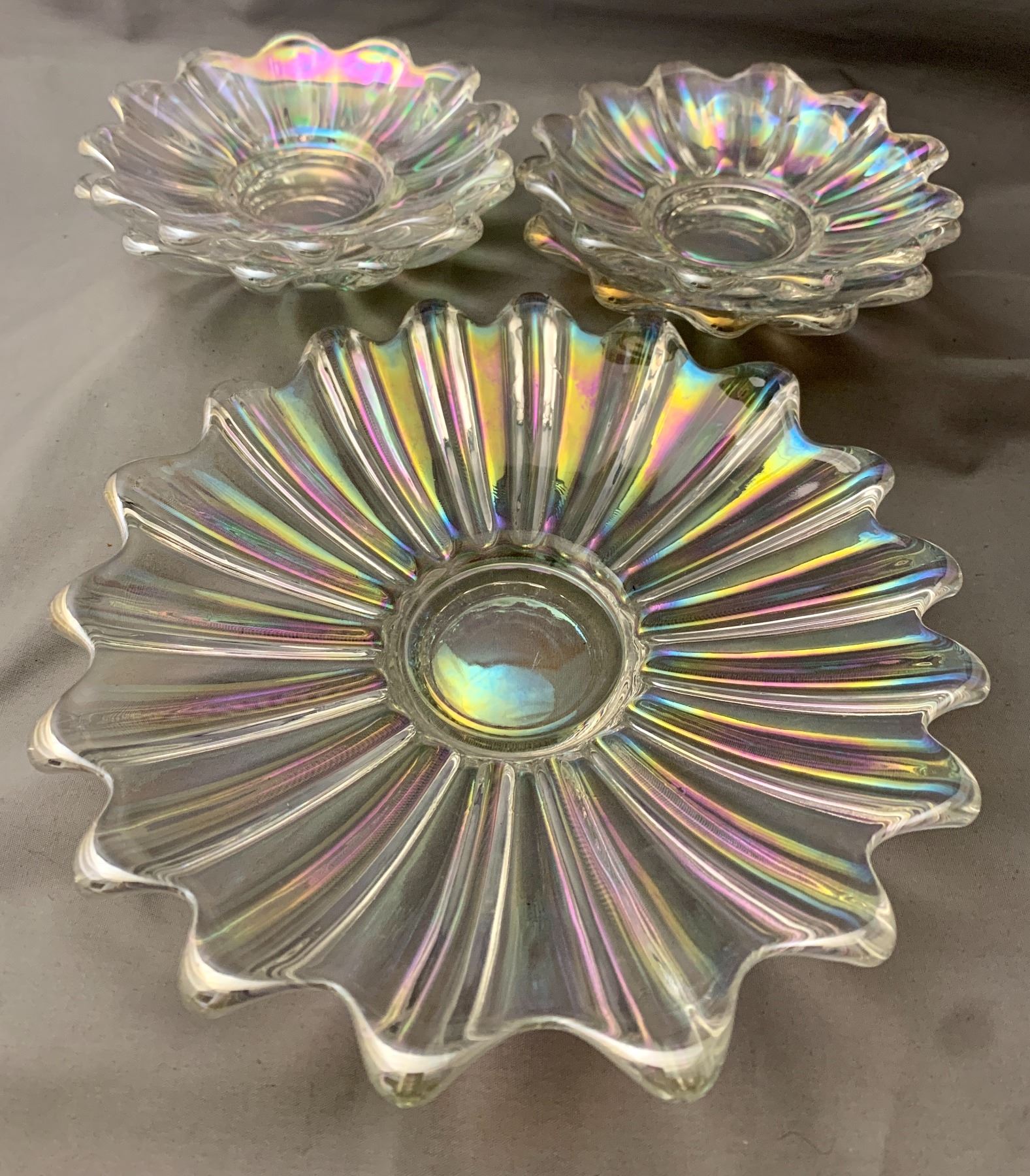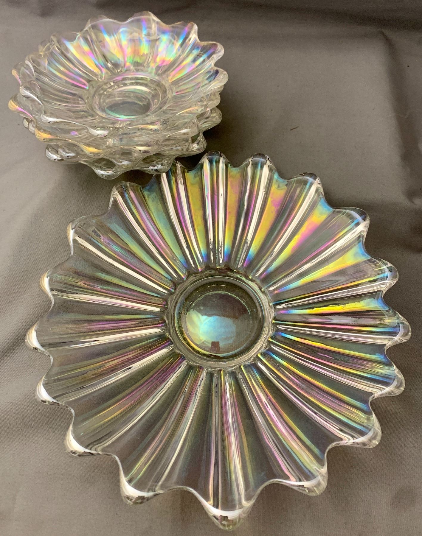 Indiana Carnival Glass Starburst 5-Piece Plate Serving Set #2 - Master and (4) Small Plates