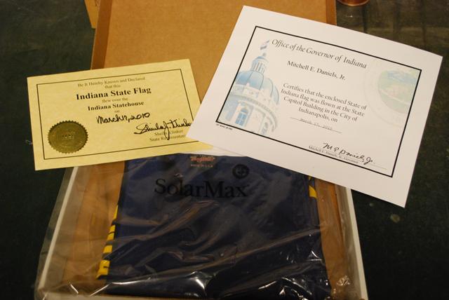Indiana Flag flown over State Capitol Building. Donor Shelia Klinker