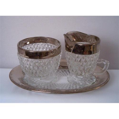 Indiana Glass Cream, Sugar & Oval Tray w/silver #847814
