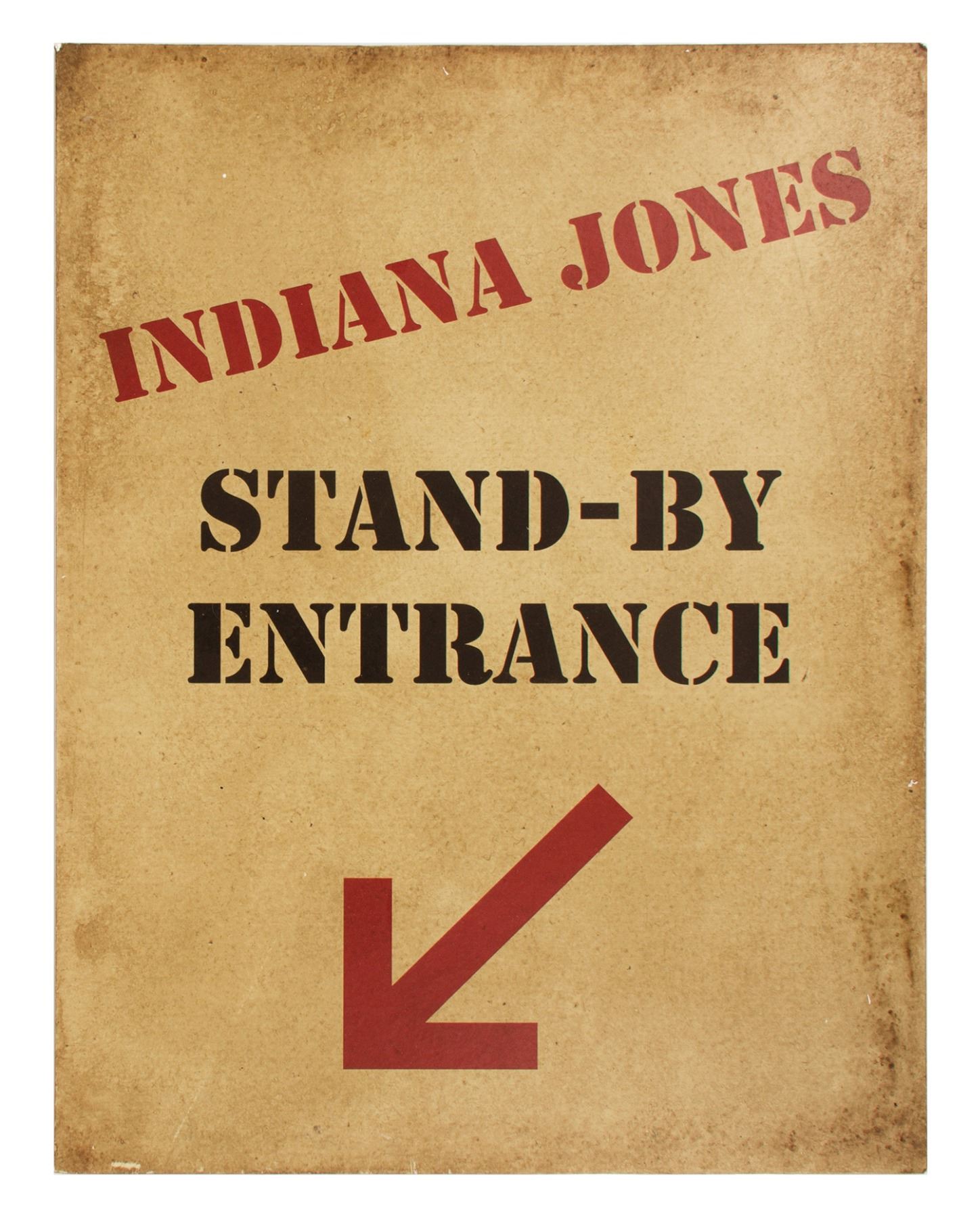 (Disneyland, c.1995) An original stand-by sign for the entrance to Indiana Jones Adventure at Disneyland. Printed on semi-flexible PVC board, the sign has been "aged" by hand to fit the theme of the attraction. Measuring 24"x18.25", the sign is in very good condition with some edge and corner wear from use.