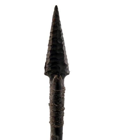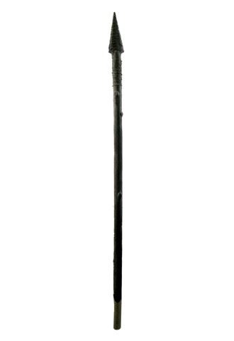 Created by the team of Grant McCune Design is this finished spear used on stage at Indy Jones Stunt Show at the Walt Disney Studio Tour in Orlando, Florida. This is primed with a rubber tip with solid rubber casting. There are photos to accompany from the show. (approx. 82" long)